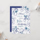 30th birthday party invitation card in elegant white and blue floral pattern, delicate and stylish with playful swirls. Customisable with your party details.