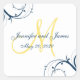 Blue Swirls Yellow Monogram Wedding Square Sticker