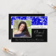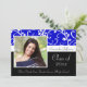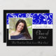 Graduation Invitations with photo and Classy blue, Black and White Design with flowers and flowing swirly vines. Cute, chic, delicate and feminine style for any girl or female graduate. Show your personal style with this beautiful photo grad invite. Great as a graduation announcement or graduation party invitation.