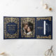 Blue Sword Shield Mediaeval Fantasy Wedding Photo Tri-Fold Invitation
