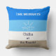 Blue Tan Stripes Family Name Beach House Cushion
