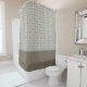 Blue, Tan, White, and Brown Circles Squares Pattern Shower Curtain. A modern urban contemporary seamless design in white, grey, and red beige for your home bathroom décor. Shower curtains are a simple and stylish accent accessory to help compliment your colour scheme and style of the main, guest, or master bathroom. I would be happy to rescale, tint, or design with you in mind, just message me to get started.