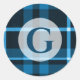 Blue Tartan Plaid Monogrammed Classic Round Sticker