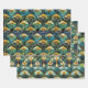 Blue, teal and Gold Peacock Stained Glass Wrapping Paper Sheet