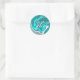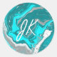 Blue, Teal and Turquoise Marble Fluid Art Monogram Classic Round Sticker