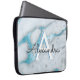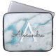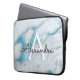 Blue Teal and White Marble Monogrammed Laptop Sleeve