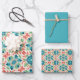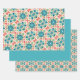 Blue, Teal, Green, Salmon & Cream Tile Pattern Wrapping Paper Sheet