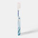 This is a colourful vintage watercolor drawing of blue irises with teal leaves on a light peach background.