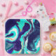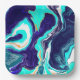 Blue Teal Ocean Swirls Marble Fluid Art Paper Plate
