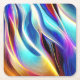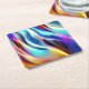 Blue Teal Pink Yellow White Wavy Abstraction Square Paper Coaster