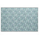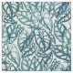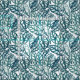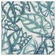 This is a pattern of blue, turquoise and white tropical leaves on a white background.
