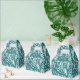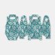 This is a pattern of blue, turquoise and white tropical leaves on a teal background.