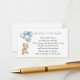A book request insert card for baby shower. Featuring watercolor blue balloons and teddy bear with poem: "ONE SMALL REQUEST, WE HOPE NOT TOO HARD