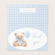 Celebrate in style with our preppy foldable 'We can bearly wait' themed baby boy shower thank you cards! Featuring a charming blue gingham pattern and sweet teddy bear wearing a bow, these elegant cards add a touch of sweetness and sophistication to your celebration. Perfect for expressing gratitude with classic charm!