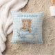 Blue Teddy Bear on plane Throw Pillow is perfect for your little one's nursery. Easily customise it with baby's name.