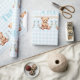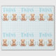 Blue Teddy Bear Twins Typography Baby Shower Wrapping Paper