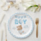 Blue Teddy Bear with Balloon Baby Shower Paper Plate