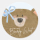 Blue Teddy We Can Bearly Wait Boy Baby Shower Classic Round Sticker