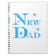 New Dad keepsake boxes, tiles, notebooks, ornaments, magnets, cards, tote bags, mugs, and other new dad clothing and gift items with a blue text and star design.