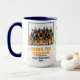 Blue Thank you Coach Team Name and Team Photo Coffee Mug. Personalize with your coach name, team name and year. You can change any text on the mug or erase it. A great gift for a coach! Add a team photo and get the team to sign the non-designed areas of the mug with a fine point permanent marker for a wonderful keepsake.