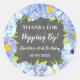 Thanks for popping by favour tag sticker with vintage blue watercolor flowers. Perfect popcorn favours for a birthday party.