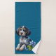Blue Tick Hound Puppy with Delicate Blue Flowers Bath Towel Set