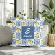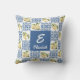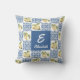 Elegant blue tile French country lemon pattern throw pillow to decorate your home with grace. Personalize with your name and initial or that of a loved one.