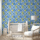 Blue Tile French Country Lemon Pattern Home Decor Wallpaper
