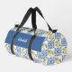 Serene blue tile French country lemon pattern duffle bag featuring a customizable name, to complement your style in the yoga studio and beyond. Personalize with your name or that of a loved one.