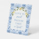 Discover sophistication in our elegant blue Mediterranean themed porcelain-inspired wedding sign, inviting guests with the sweet message "Love is sweet, please take a treat." Adorned with a graceful bohemian arch with watercolor lemon branches and delicate yet simple calligraphy script, this sign adds a touch of refined charm to your wedding decor.