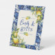 Celebrate with these vintage Mediterranean blue tiles and lemon inspired stylish cards and gifts pedestal signs. This Vintage Blue tile and lemons sign can be customised with your own details. The design features a vintage blue tile background with realistic lemon artwork.