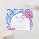 Blue Tiles and Bougainvillea elegant Mediterranean Greek Santorini Mykonos themed bridal shower RSVP enclosure card template instant template.