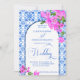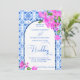 Blue Tiles Bougainvillea elegant wedding Invitation