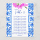 Blue tiles Bougainvillea Amalfi Santorini Mediterranean themed function template table card, it's two sides you can use just one side as a table number or you can use reverse side with a table number and guests names.