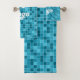 Personalise and add your company, business logo. Blue pool tiles as background.