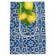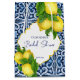 Blue tiles and lemon Amalfi Positano Mediterranean style bridal shower custom gift bag, Morocco style carved border.