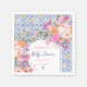 Complete your party table setting with our Italian-Mediterranean inspired party paper napkins. Featuring a fresh blue ceramic tile pattern and cheerful hand-painted pink spring/summer wildflowers, these napkins add a touch of sophistication to any celebration. With their modern arch shape and elegant brush script, they're perfect for adding a stylish accent to your party decor. Set the scene for a memorable event with these charming and versatile party napkins!
