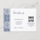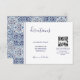 Blue wedding directions insert card. Easily edit the font colours by clicking the Edit Design Tool button. Add your own QR code so guests can easily RSVP and see more details on your website. Find matching invitation suite and more in our shop - the Mediterranean tiles collection -. Contact us for more matching products.