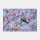 Blue Tit Bird in Pink Japanese Cherry Blossoms Doormat
