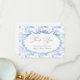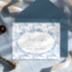This item blends classic elegance with whimsical charm. The design features a delicate toile de Jouy pattern in soft baby blue, showcasing vintage-style safari animals like elephants, giraffes nestled among floral and leafy details. The intricate linework and gentle colour palette give it a timeless, heirloom feel—perfect for a refined and sweet celebration. Accented with elegant typography and frame with bow. This itemeffortlessly blends whimsy, tradition, and grace, offering a beautiful way to welcome a new baby. Matching items available.