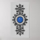 ornamental blue topaz gem stone surrounded by a filigree of flowers and leaves. lovely oval shaped blue topaz with a border of ornate decorative lace like black silhouette of flowers and leaves. looks like jewellery as in a brooch or bracelet.