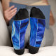 My original artwork is on these fun crazy socks, featuring a swirl and flow pattern in blue tones for a windy tornado effect. These cosy socks are considered a sustainable product and are printed with water-based inks. Stylish and comfy, they make a great gift or stocking stuffer. One size truly fits all.