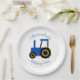 Birthday party paper plate tractor design. You can customise this birthday party plate with any text of your choice. Should you require any help with customising then contact us through the link on this page. Blue tractor design personalised birthday party paper plate