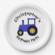 Birthday party paper plate tractor design that you can customise with any text of your choice. Should you require any help with customising then contact us through the link on this page. Tractor birthday party paper plate