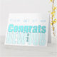 Simpleandmodern New job greeting card. Blue transparent lettering (not customisable) on white background. The colour background is customisable and text "from all of us" too.