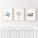 Add a finishing touch to your little one's space with this set of 3 transportation prints.
