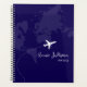Cool and modern planner for a travel agency... featuring a small plane and the map of the world printed on a deep blue background colour...