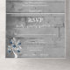 Invite guests to your upcoming wedding with a Blue Tree of Hearts All in One Wedding Invite. Invite design features a grey wooden background adorned with a tree with blooming hearts on its branches with a perforated RSVP card. Personalise with the groom and bride's names along with the wedding date and location. Additional wedding stationery available with this design as well.