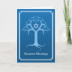 Passover card featuring an ornate tree with branches surrounding a white Star of David on a blue gradient background. White text: Passover blessings. For more products, custom requests, sales & news, please follow us on Facebook: @chaistationery