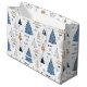 Blue Trees Modern Christmas Name Text Large Gift Bag